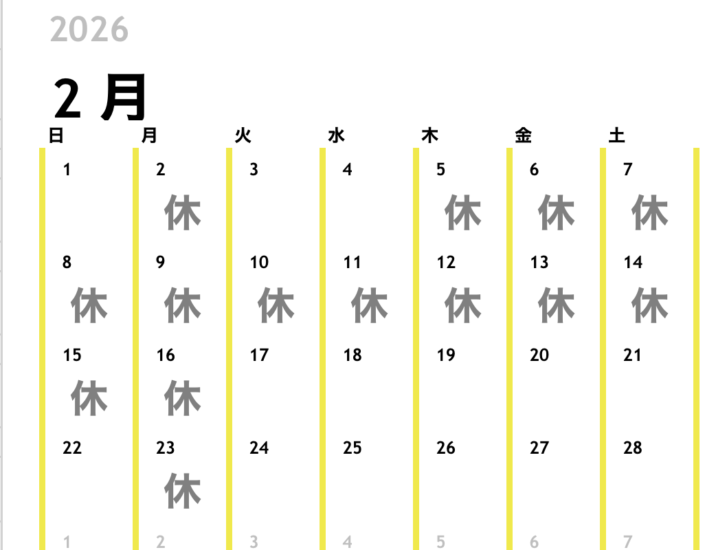 2月5日(木)より16日(月)までを冬季休暇とさせていただきます。2月17日(火)より通常営業いたします。